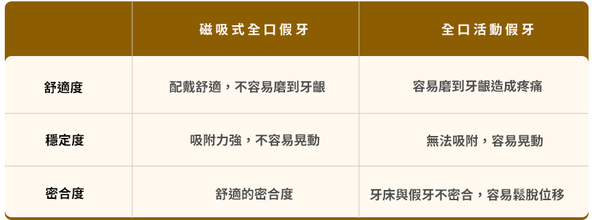 比起傳統活動假牙,磁吸/卡扣式活動牙較不會給無牙區施予壓力,可大幅降低疼痛感。